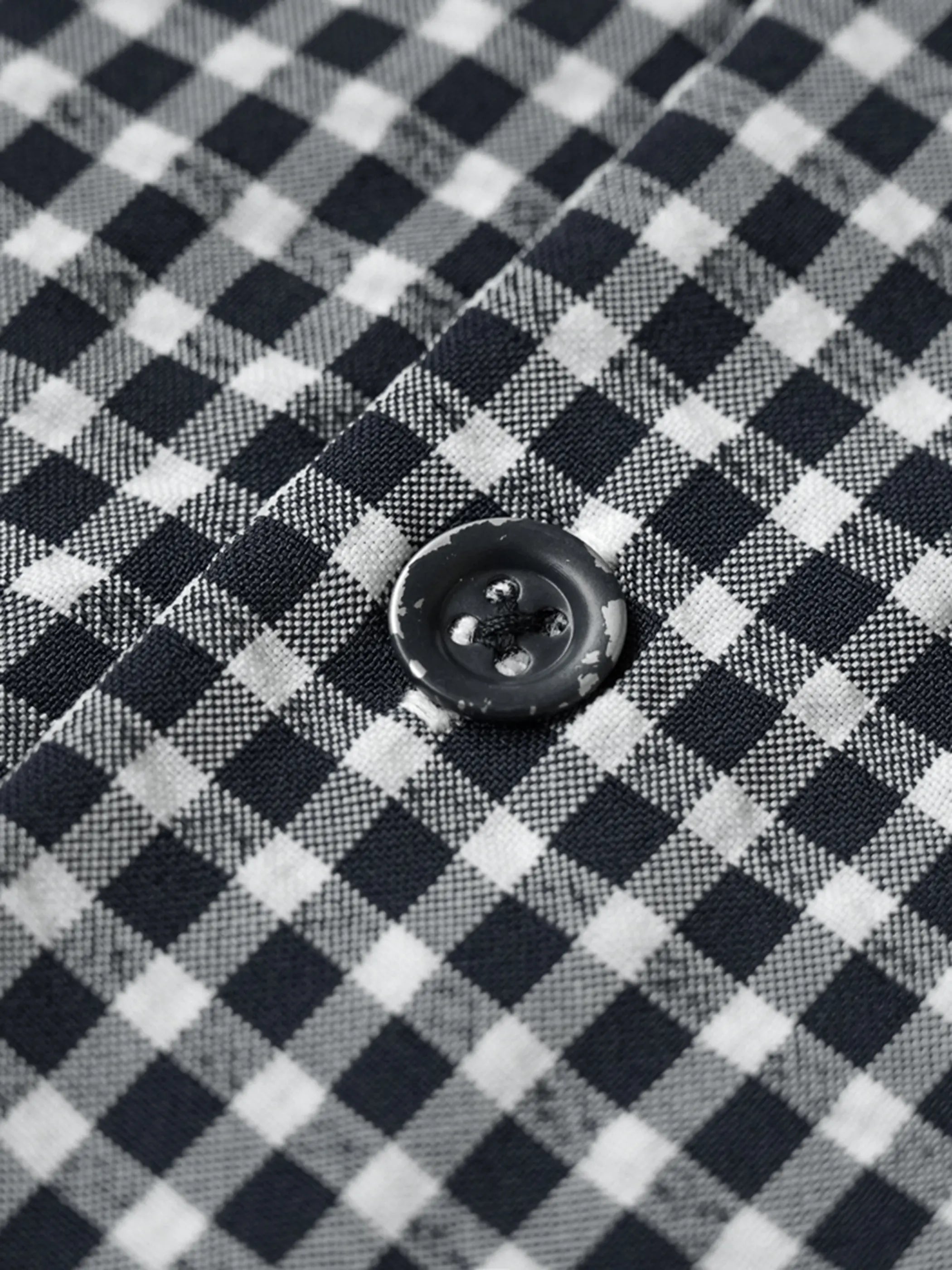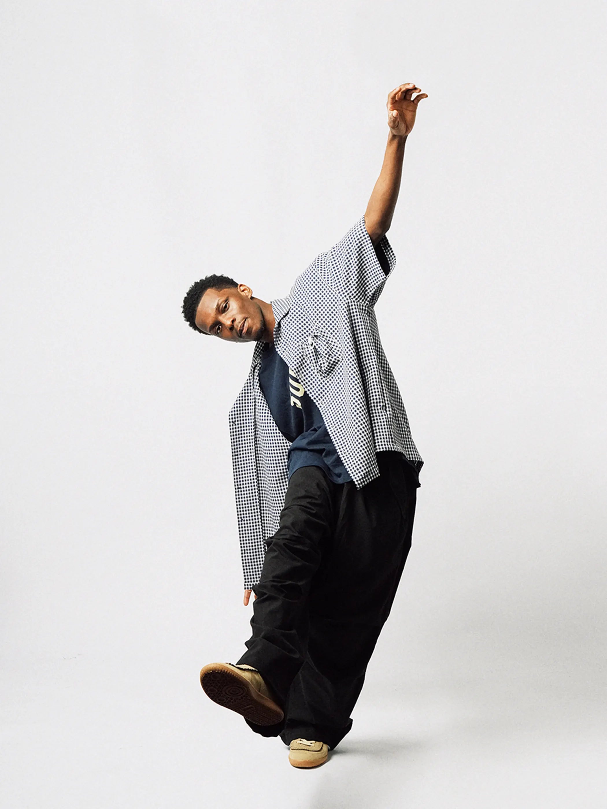통기성과 경량감을 강조한 네이비 체크 버블 거즈 원단 위에 빈티지 메탈 버튼과 포켓 스트링 디테일을 더해 아웃도어 무드를 접목했으며, 1950년대 리조트 셔츠에서 영감을 받은 루즈 핏 쿠바 칼라 실루엣이 데님 또는 린넨 팬츠와 매치 시 감성적 도시 스타일을 완성합니다.