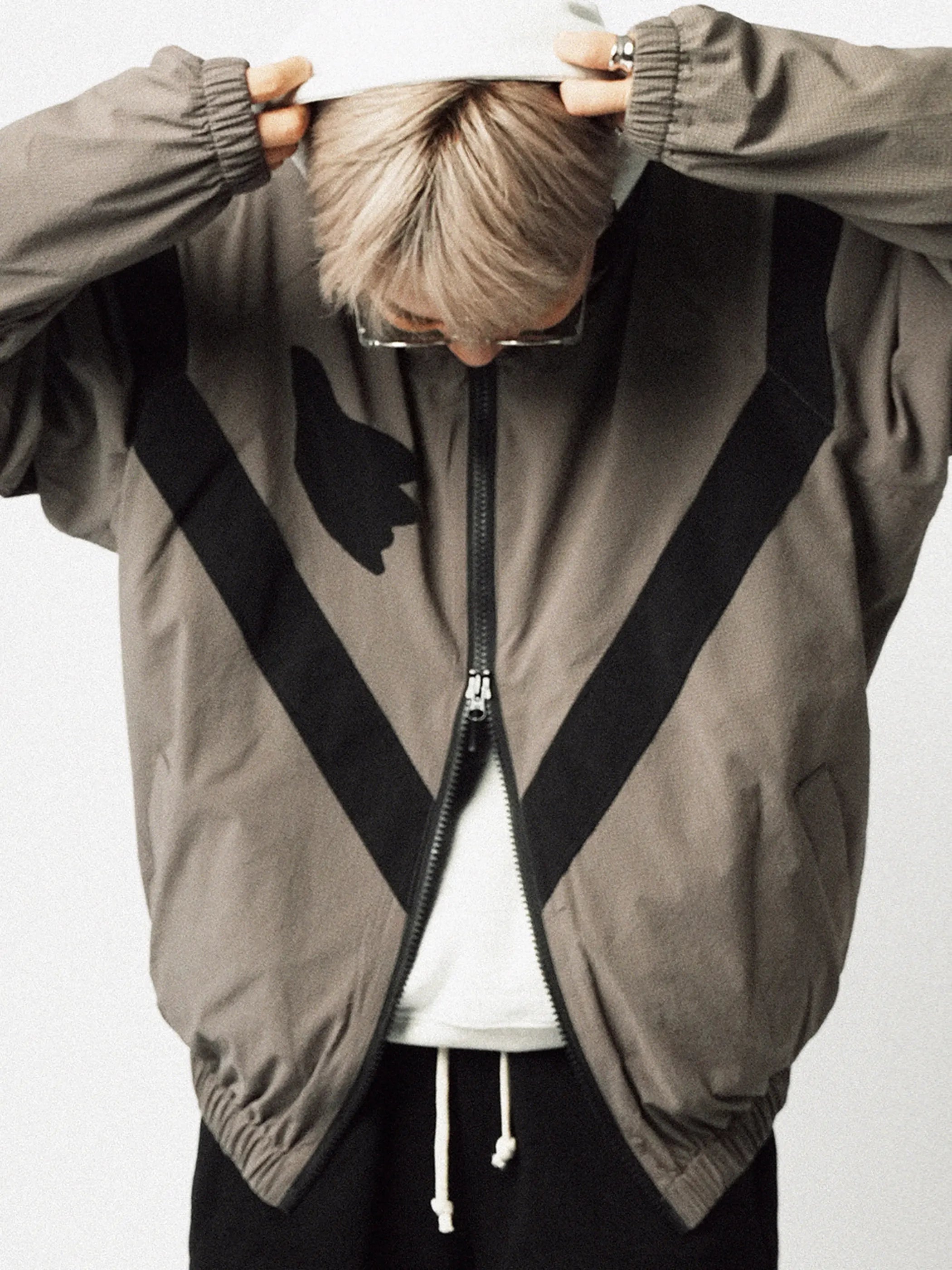 친환경 섬유 SORONA™ 버블 거즈 원단 위에 3M Scotchgard™ 코팅을 더해 탁월한 내구성과 빠른 건조 성능을 제공하며, US ARMY IPFU 트레이닝 재킷의 구조를 재해석한 오버사이즈 실루엣과 YKK™ 투웨이 지퍼, 핸드스티치 새 모티프 및 컬러 블록 패널이 조화를 이루어 도시적이면서도 여유로운 레트로 애슬레저 무드를 완성합니다.