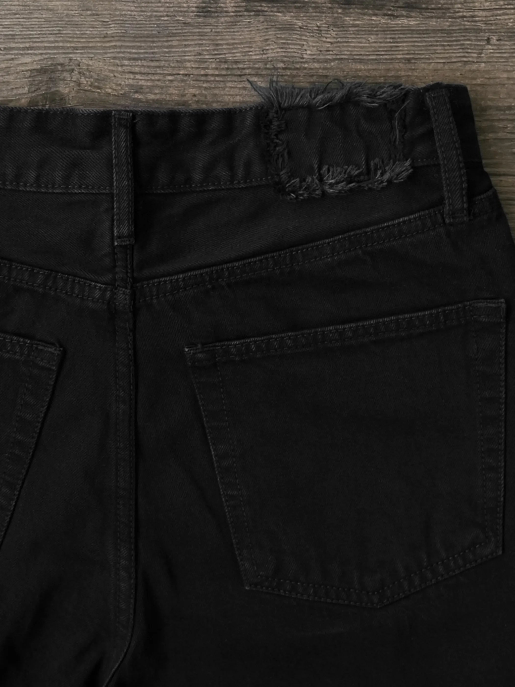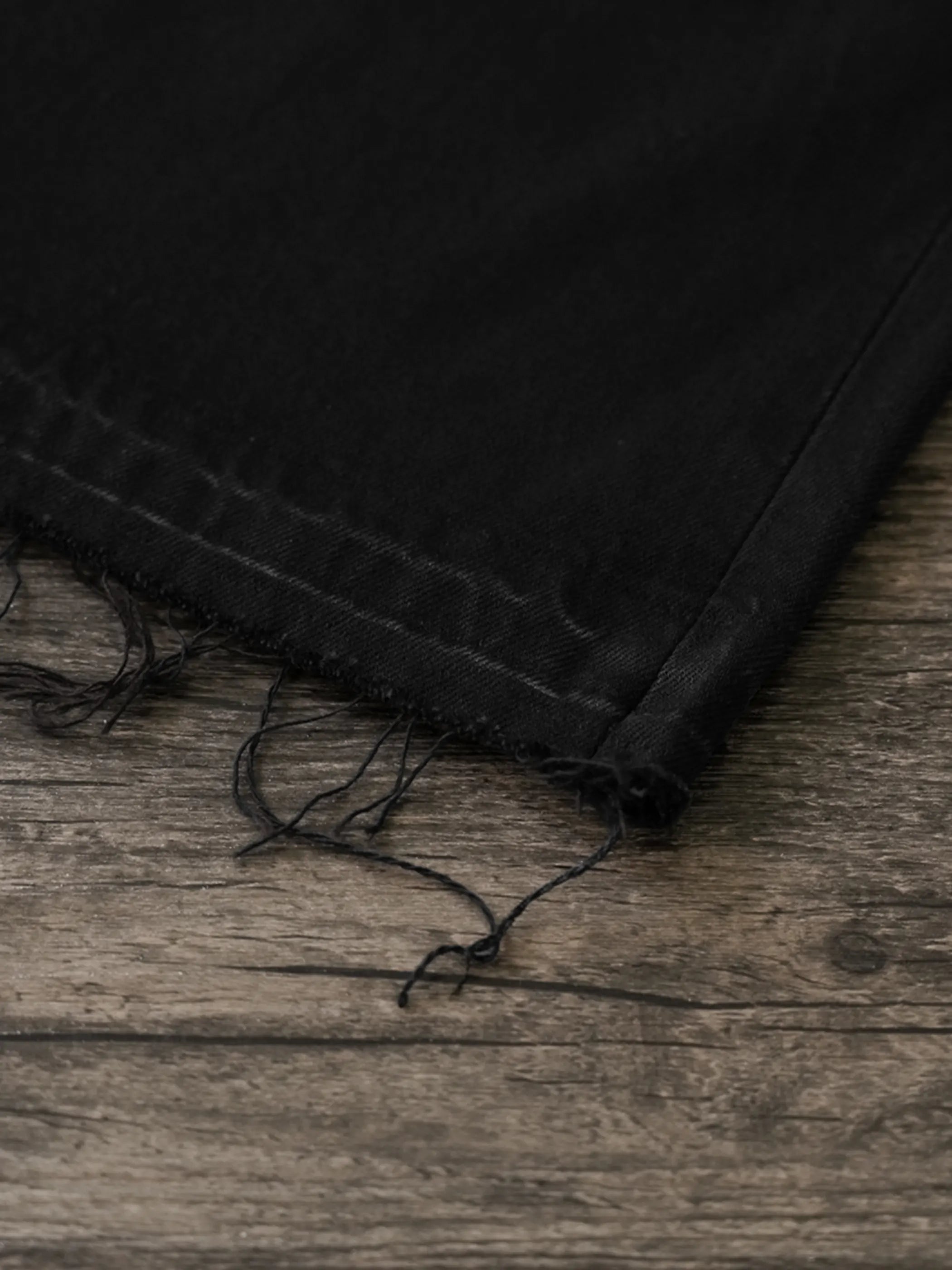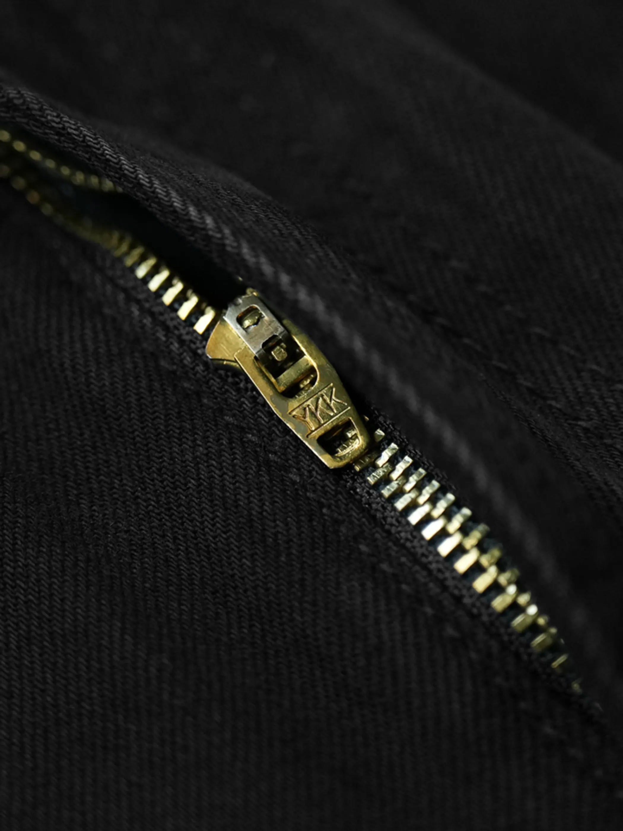 전통 협폭 직기로 짠 레드 셀 셀비지 데님에 클린 워시드와 핸드 디스트레스 마모 처리를 더해 자연스럽고 깊이 있는 빈티지 텍스처를 구현했으며, YKK™ 메탈 지퍼와 공구 버클 디테일, 동일 원단의 웨이스트 레이블이 어우러져 모던한 도시적 여유와 공작적 개성을 동시에 선사합니다.