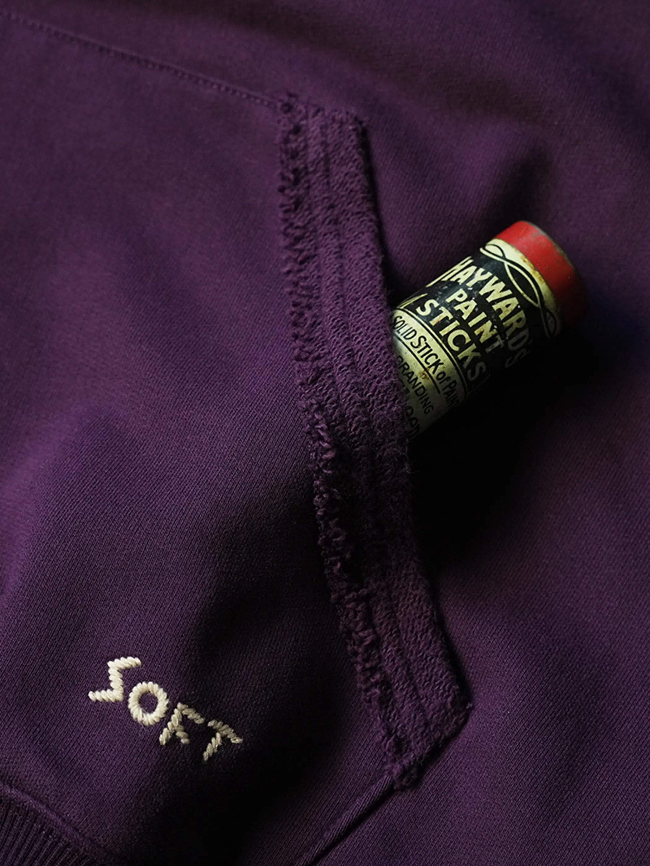 캠퍼스 운동팀 후디에서 영감받은 오버사이즈 드롭숄더 실루엣에 부드러운 딥 퍼플 혼방 테리 코튼을 세미 워시드 처리해 자연스러운 광택감을 더했으며, 풀림 엣지 카ンガル루 포켓과 ‘SOFT’ 러프 자수 디테일이 간결한 레트로 감성과 편안함을 동시에 선사합니다.