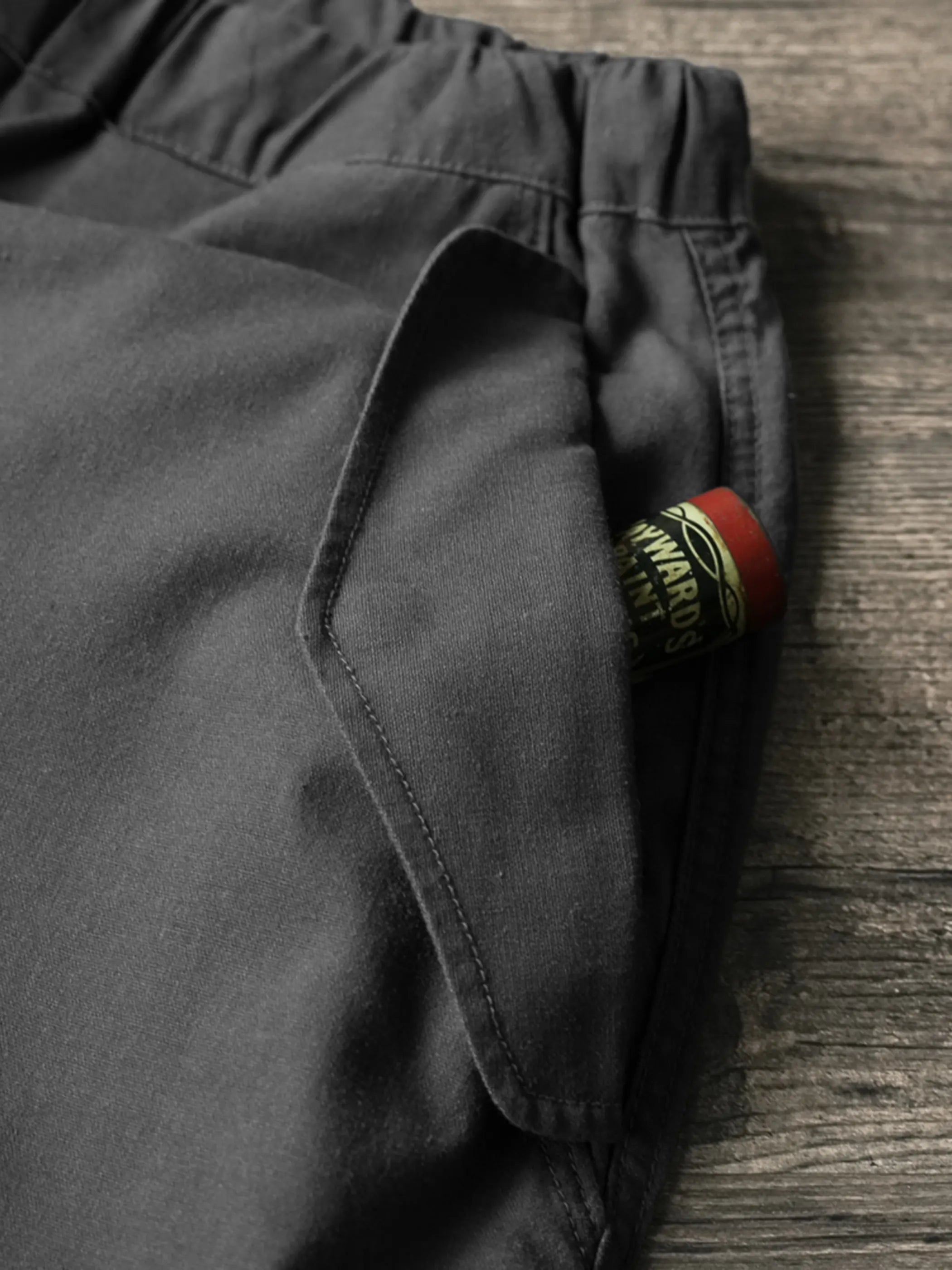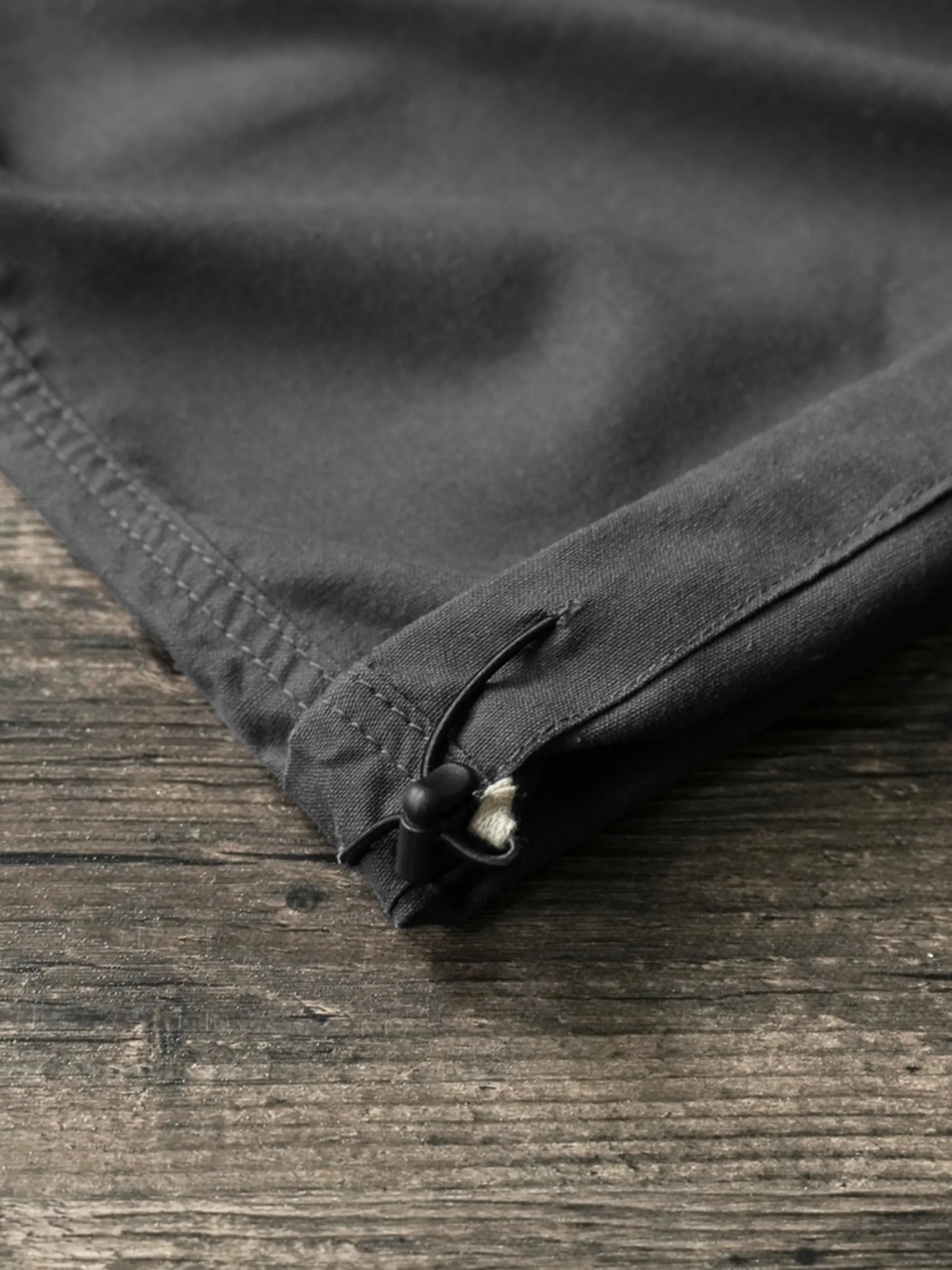 55% 리넨·45% 코튼 혼방의 탄탄한 차콜 그레이 원단을 가벼운 워싱으로 자연스러운 텍스처감으로 표현했으며, 밀리터리 파라슈트 팬츠에서 영감 받은 다수의 포켓과 YKK™ 메탈 리벳 디테일, 그리고 가변 밑단 드로스트링이 개성 있는 실루엣과 뛰어난 실용성을 동시에 선사해 도시적 여유를 완성합니다.